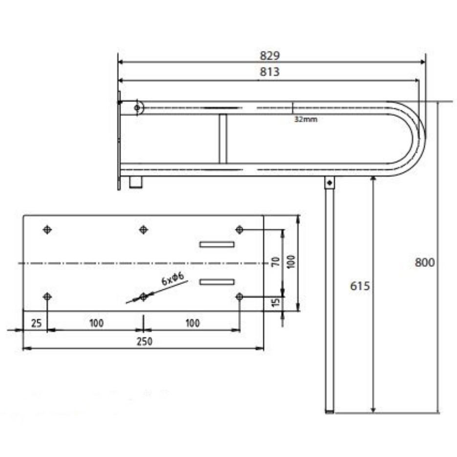 Caractéristiques de la Barre de maintien relevable avec renfort 82,9x80cm en forme de U, Acier inoxydable, Inox, Bemeta Help (301102081N) :