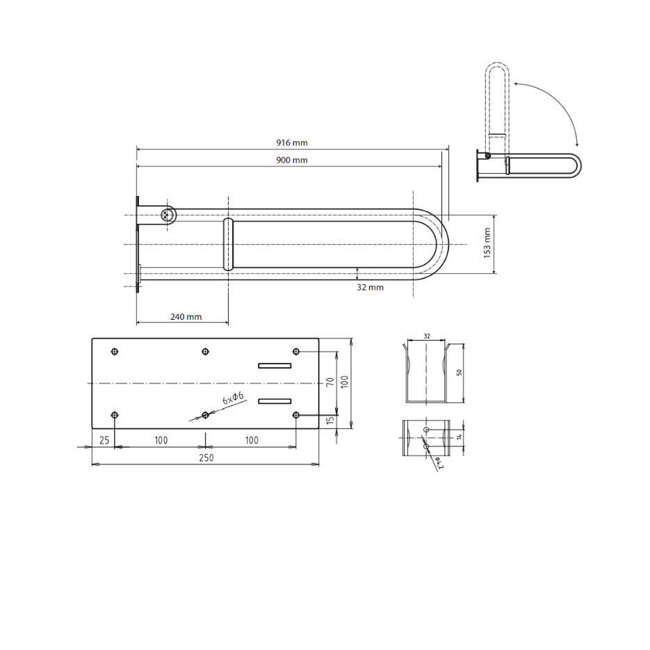 Caractéristiques de la Barre de maintien relevable 90cm, en forme de U, Acier inoxydable, Bemeta HELP (301102901) :