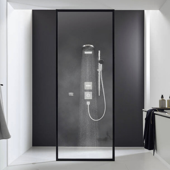 - Support douche à main réglable en hauteur avec bouton-poussoir Select externe