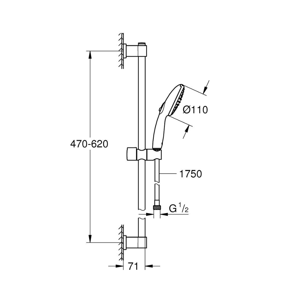 Caractéristiques du set de douche avec barre + Douchette 2 jets, chrome Grohe Vitalio Start 110 (G27948001) :