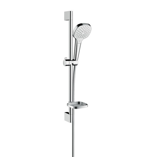 Laissez-vous séduire par ce Set de douche, douchette Vario 3 jets, avec porte-savon, barre de douche 65cm, Chrome, Hansgrohe Croma Select E (26586400).