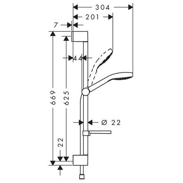 - Diamètre de la barre de douche: 22 mm