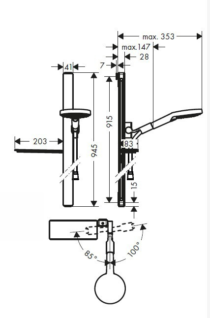 - curseur de douche entièrement chromé