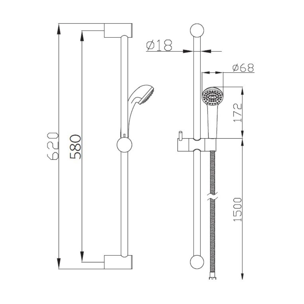 Ensemble de douche SIKO avec 1 fonction d'un diamètre de 6,8 cm et d'une longueur de 62 cm. Matière Plastique.
