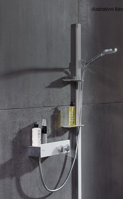 - comprenant : barre de douche, flexible de douche, curseur, porte-savon
