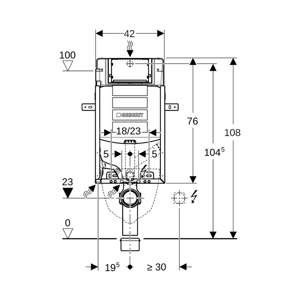 Caractéristiques de l'Elément de montage pour WC suspendu, 108 cm, réservoir UP320 à encastrer Sigma 12 cm, Geberit Kombifix (110.367.00.5) :