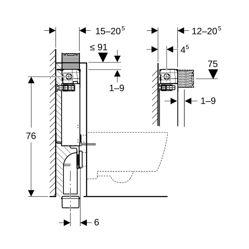 - Pour WC suspendus avec dimensions de raccordement selon DIN EN 33:2011-11