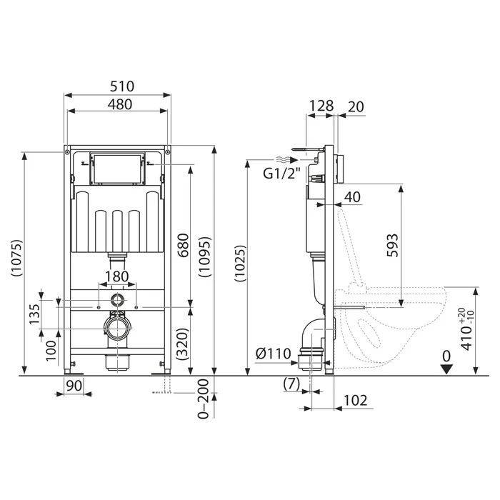 Caractéristiques du bâti-support sol-mur avec plaque blanche (92122868):