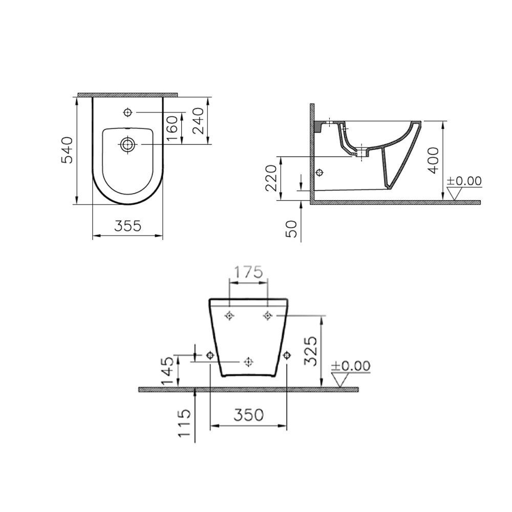 - Vitra Integra bidet suspendu et trop-plein, 35,5x54 cm, blanc (7042-003-0288)