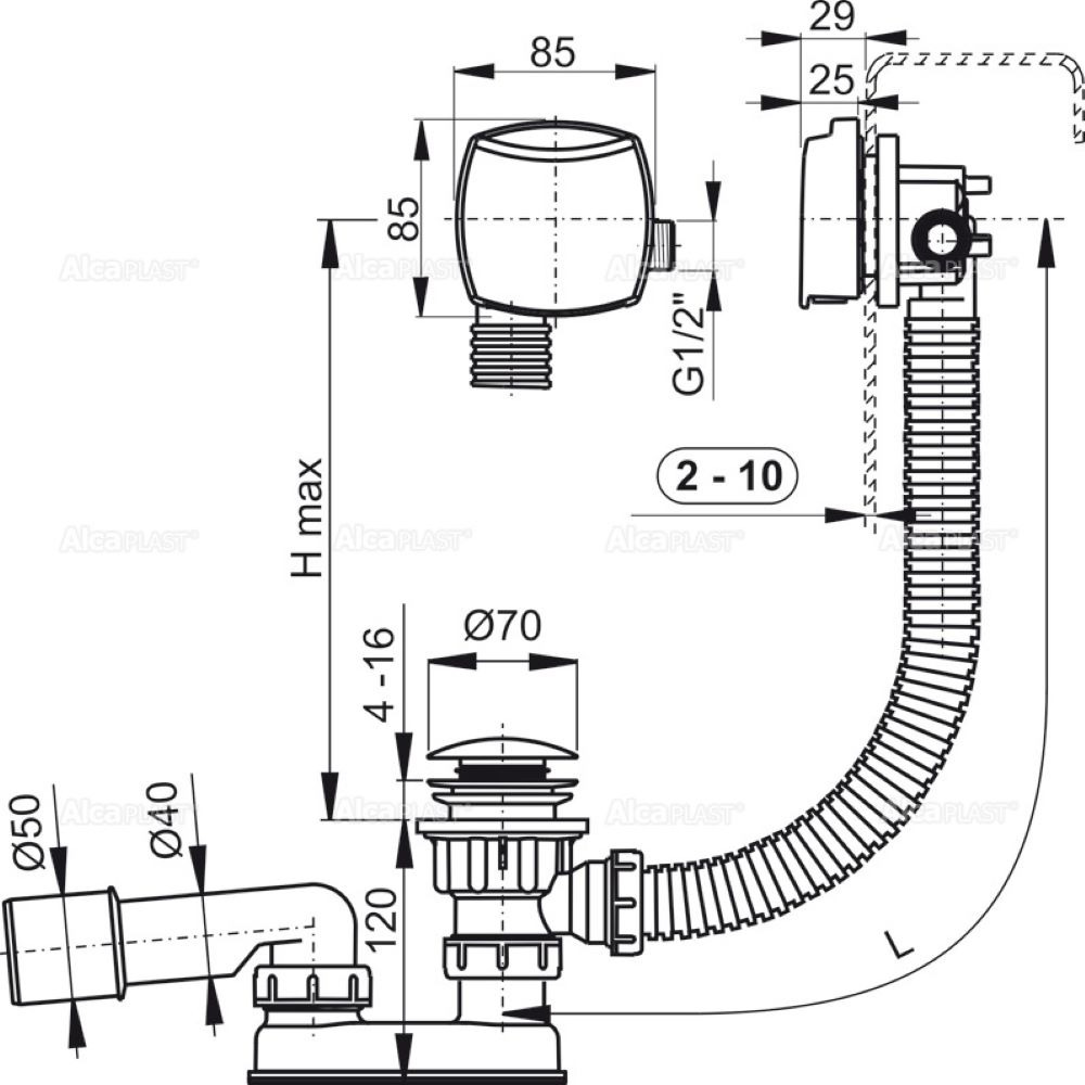 Alca Siphon pour baignoire avec vidange manuelle (A508KM)