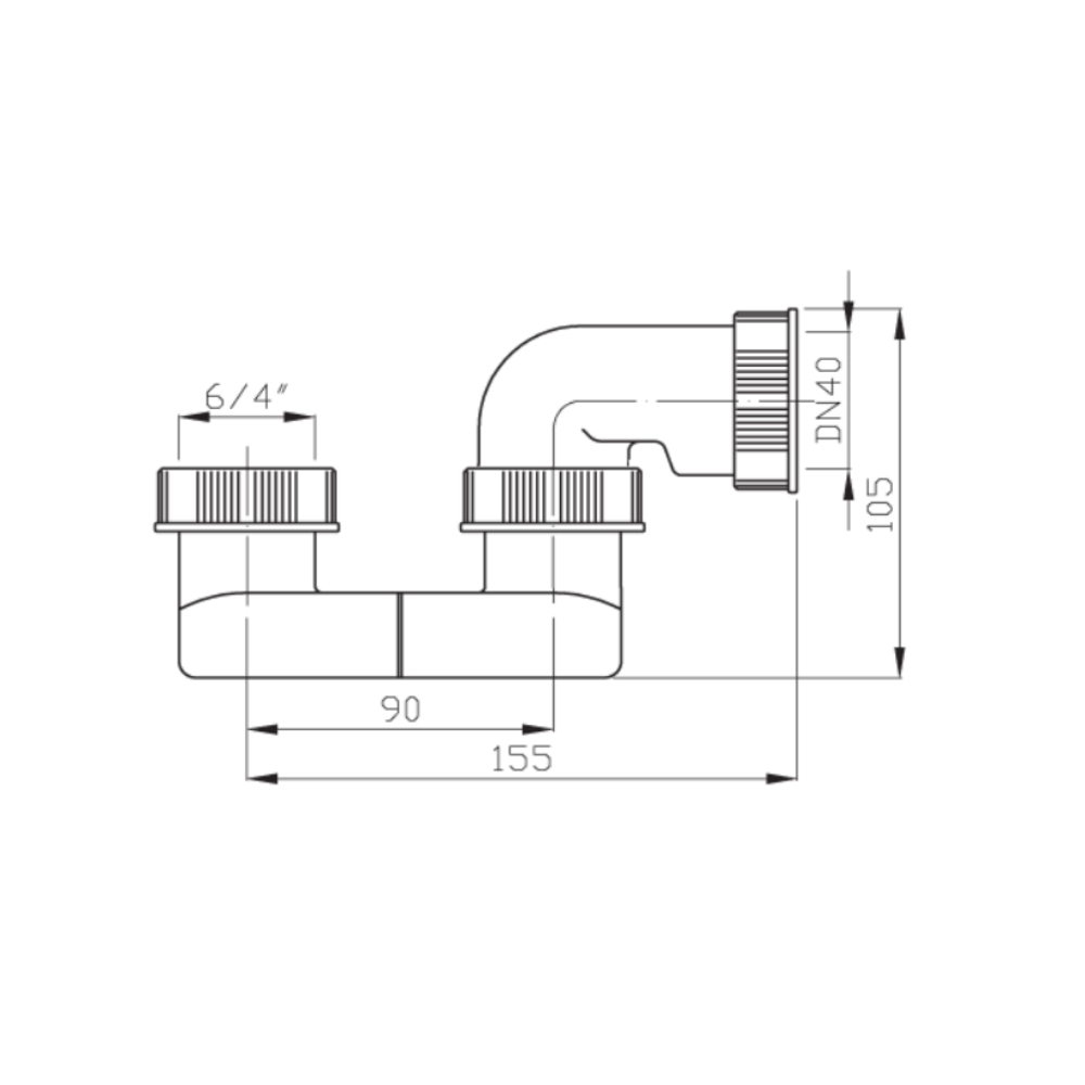Siphon de bain MULTI 6/4x40 mm-B avec écrous pour automatismes de bain.