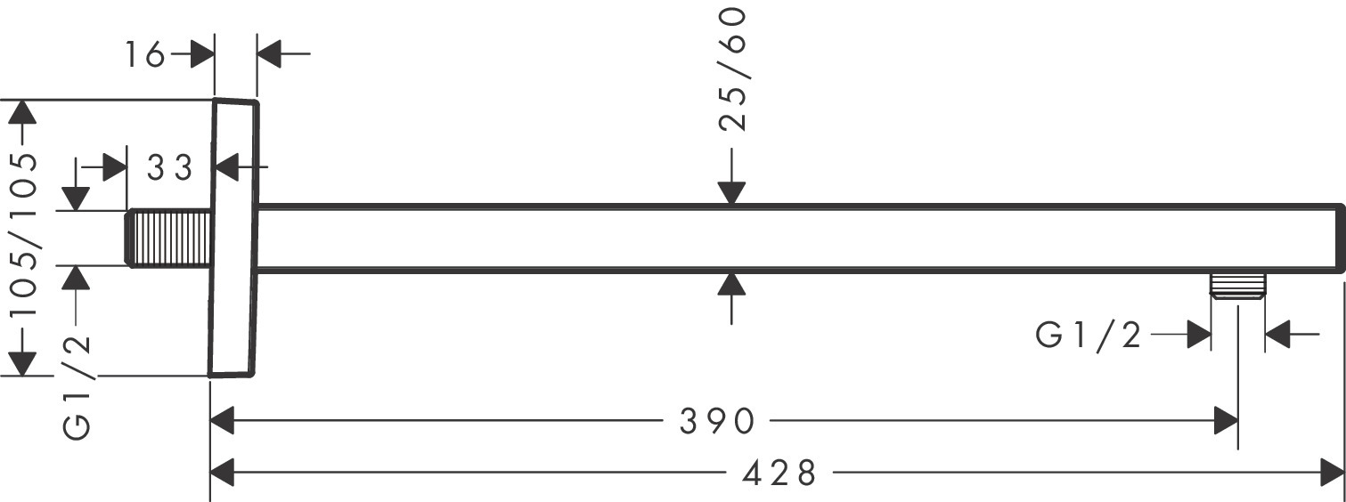 Caractéristiques du bras de douche Square M 1/2" 389mm, Aspect Doré poli Hansgrohe (27694990) :