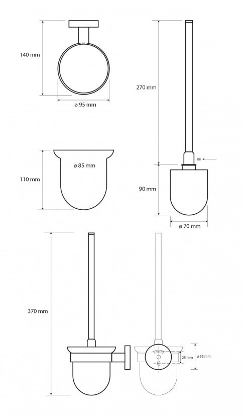BEMETA Nero Porte-balai de WC mural en laiton noir et bol en verre 37x14x9,5cm (104113010)