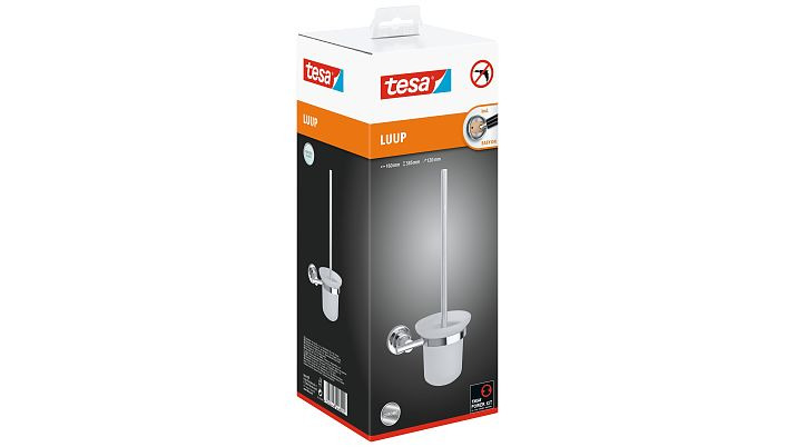 Caractéristiques de la Brosse WC en verre avec support mural en métal, Chrome, pose facile sans perçage, Tesa Luup (40289-00000-00) :