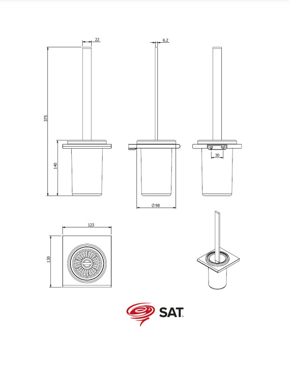 Caractéristiques de la Evolution R Brosse WC en Verre avec support mural en Aluminium, (SATDEVOR37)