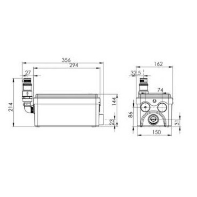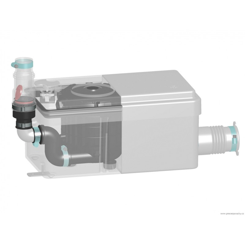 Grâce à ses dimensions compactes et à son enclenchement bas, la pompe sanitaire de douche Sanidouche+ peut s'intégrer sous un receveur de douche ou dans un meuble de salle de bains. Avec son faible niveau sonore (46 dB(A)), elle se fera discrète une fois installée.
