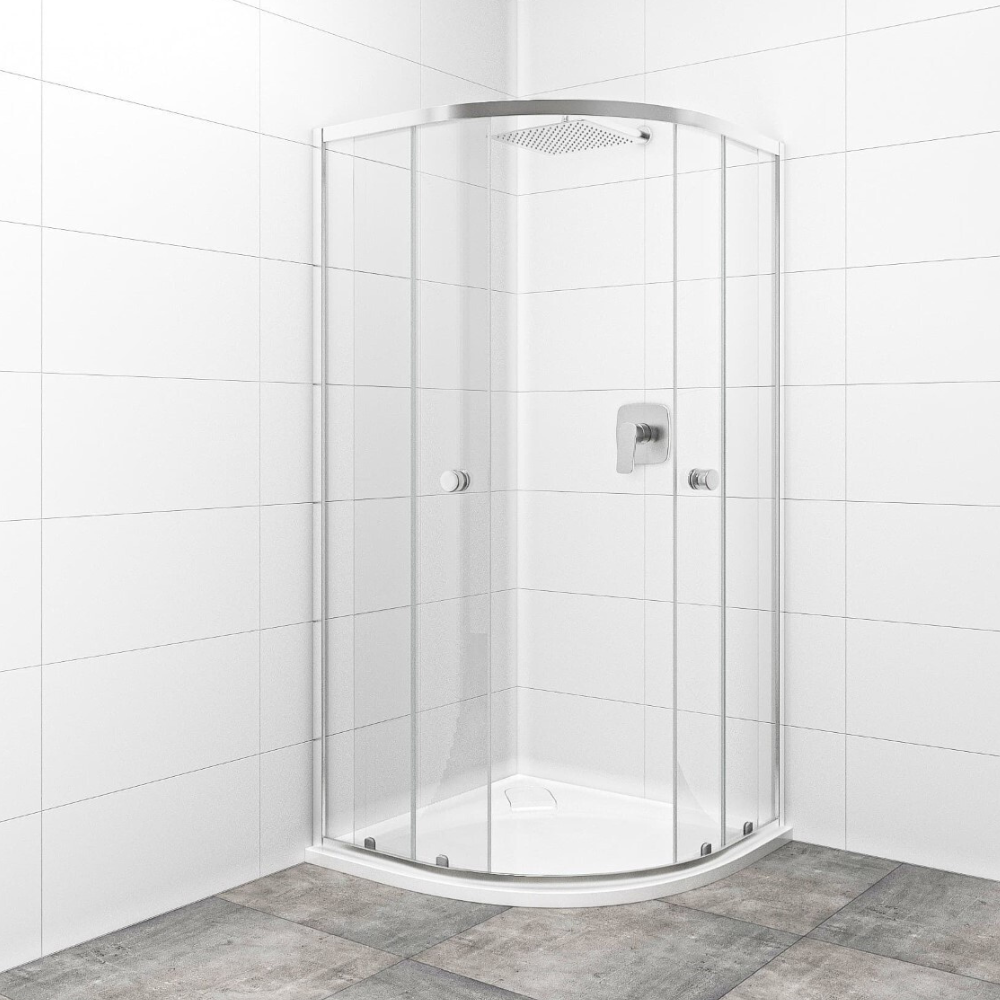 Caractéristiques de la cabine de douche 80x80 cm en quart de cercle avec 2 parois fixes et 1 porte, chrome brillant Swiss Aqua Technologies Project (SIKOMUS80CRT) :