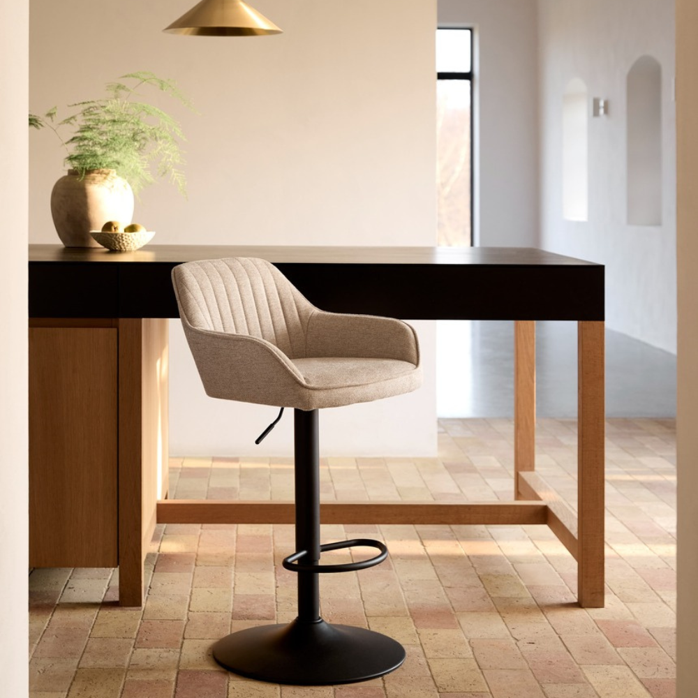 Siko Nolan X2 tabourets de bar réglables, rembourrés en tissu beige, hauteur 73,5 cm, pieds en métal (50830000)