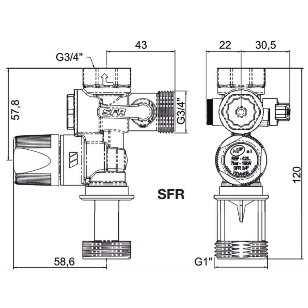 Caractéristiques du Groupe de sécurité standard pour chauffe-eau, Raccordement femelle Ø 3/4” SFR® (2252550):