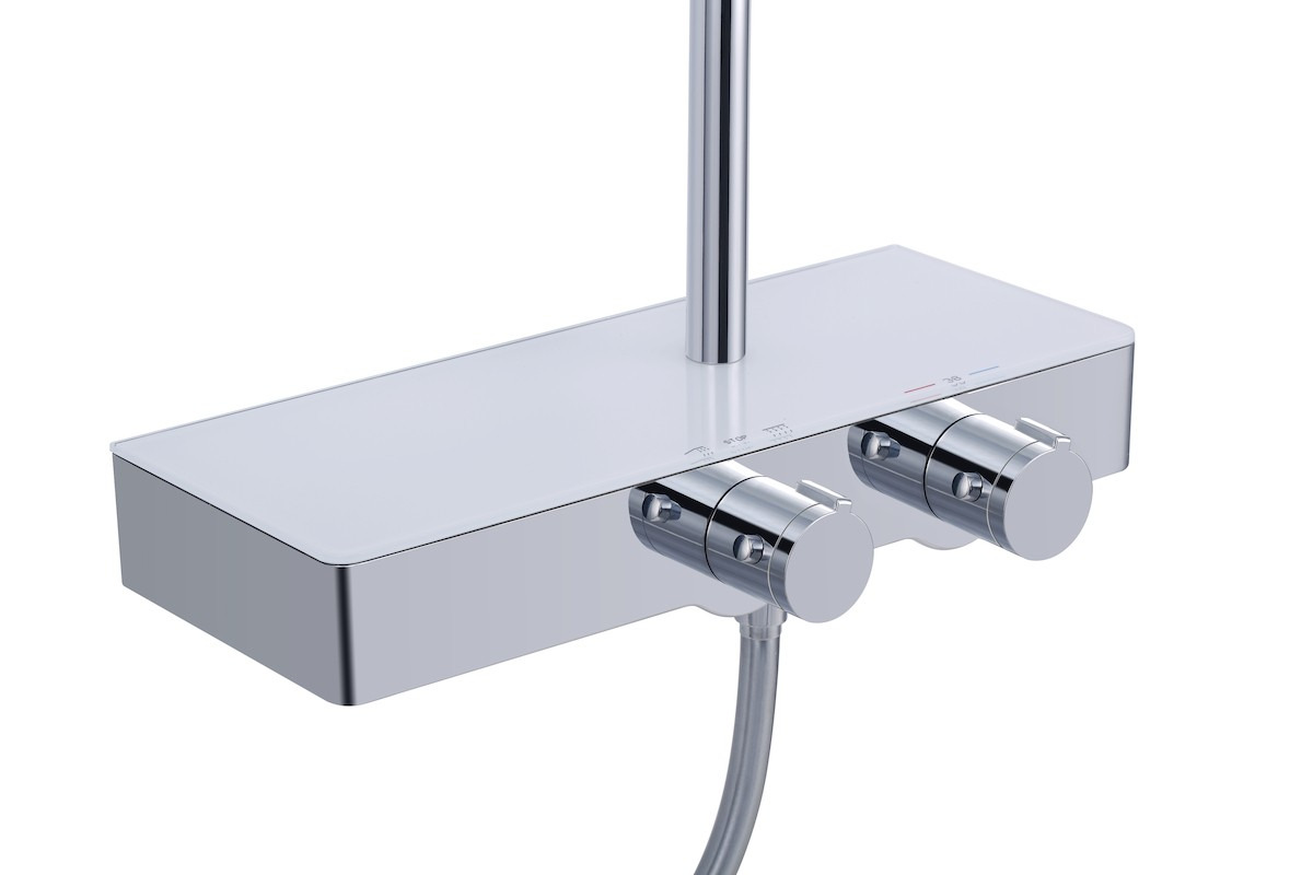 - Mitigeur thermostatique avec tablette en verre trempé intégrée