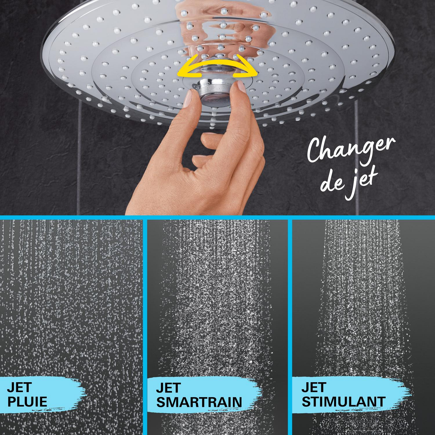 - Permet le changement entre : douche de tête Vitalio Joy 260 (26462) Rain, SmartRain, Jet