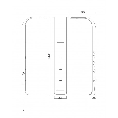 - Fonctions : douche de tête, cascade, douchette à main, jets de massage