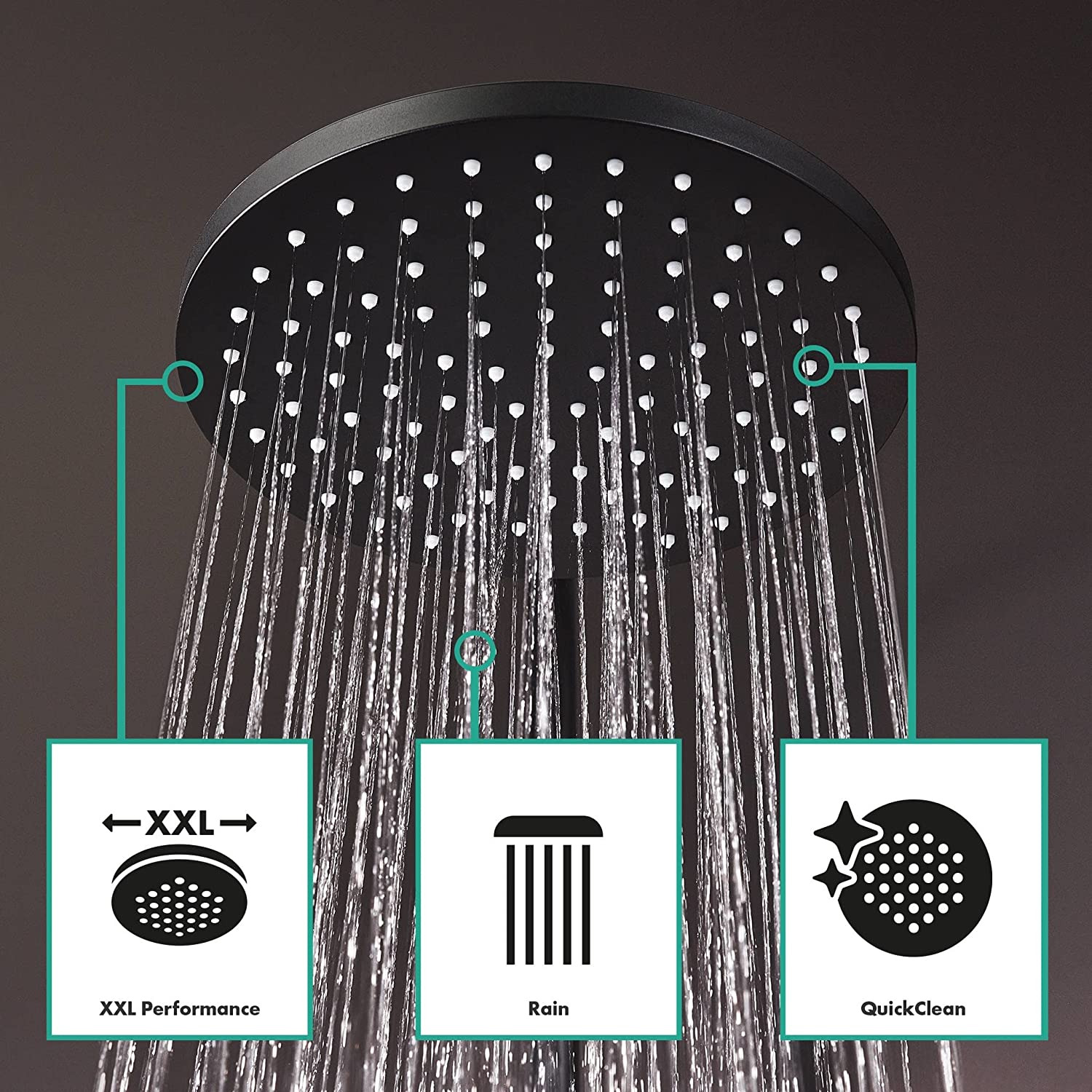 Caractéristiques de la Colonne de douche 200 1jet EcoSmart 9 l/min avec mitigeur thermostatique, Noir mat, Hansgrohe Vernis Blend (26089670) :