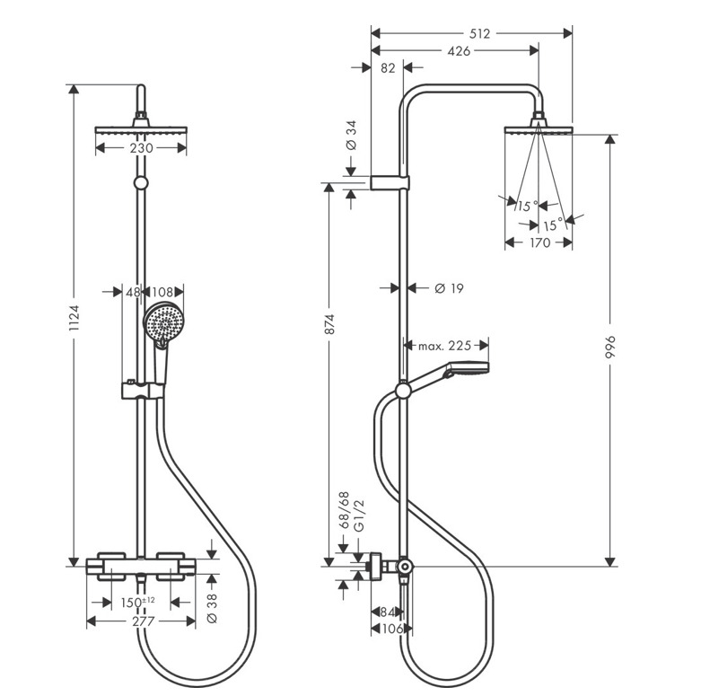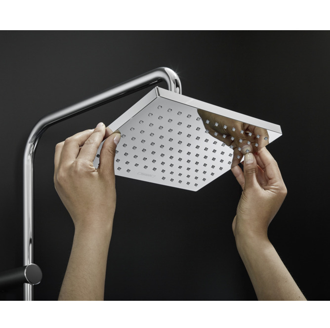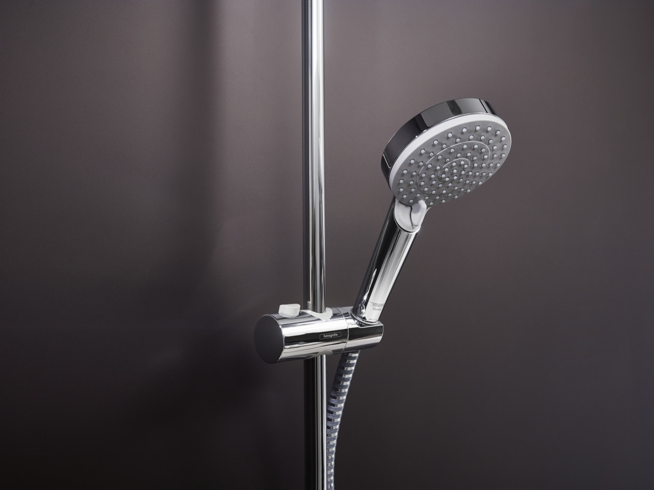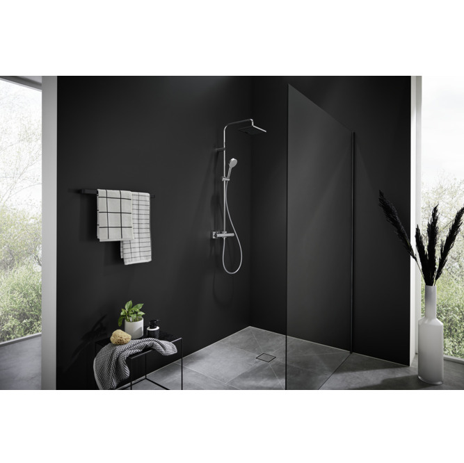 Caractéristiques de la Colonne de douche 230 1jet avec mitigeur thermostatique, Chrome, Hansgrohe Vernis Shape (26286000) :