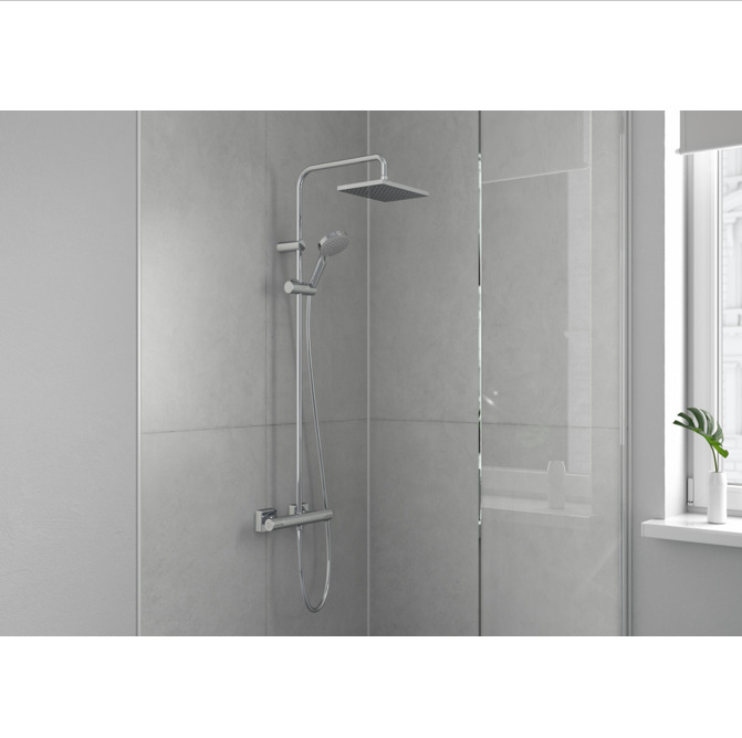 - Comprenant : douche de tête, douchette, thermostatique de douche, flexible de douche, curseur