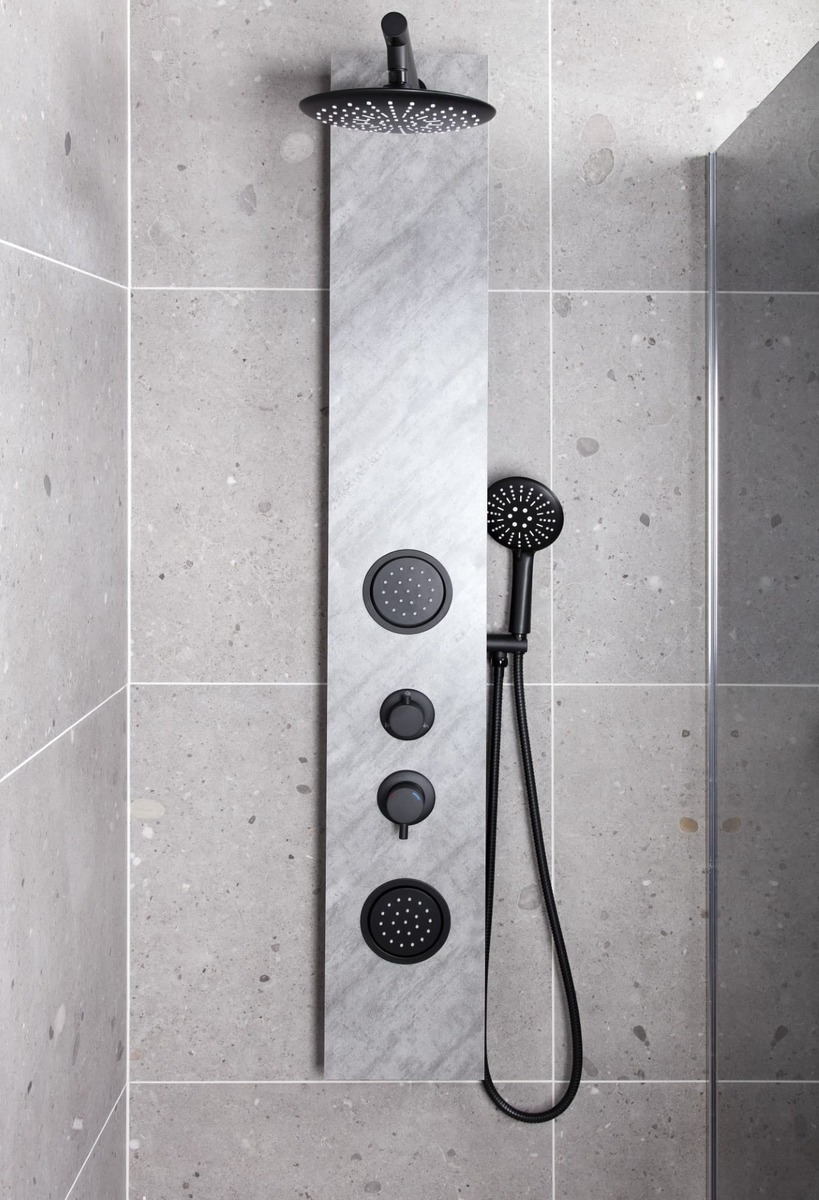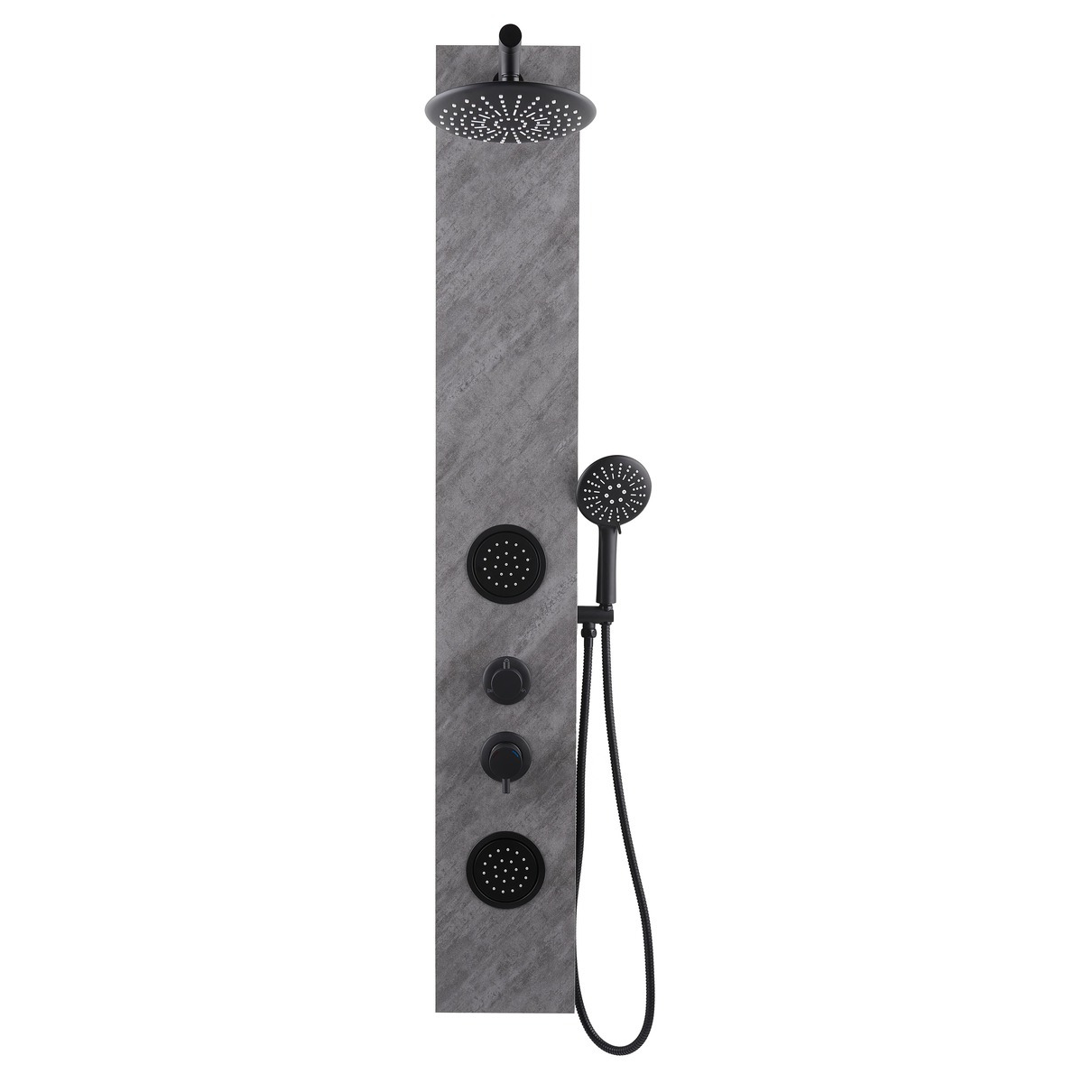 Swiss Aqua Technologies Colonne de douche hydromassage décor aspect pierre, Douchette à main, 2 buses, tête de douche ronde, Noir