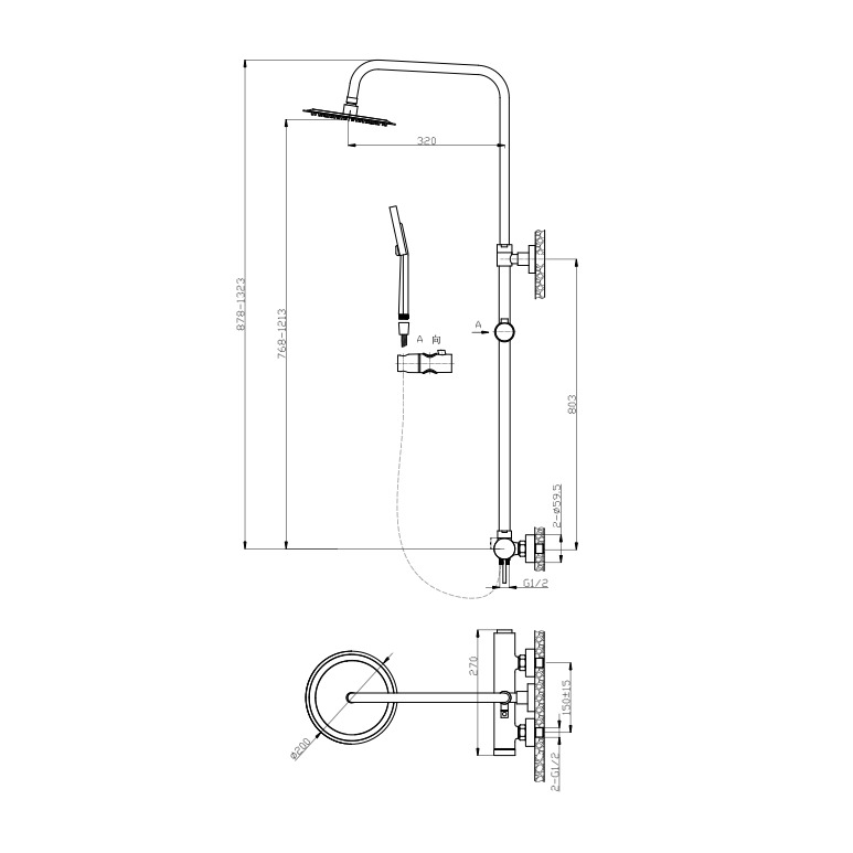 - Diamètre douche de tête (mm):200