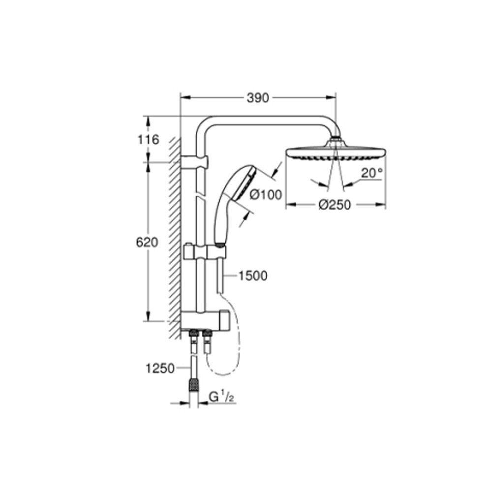 - Diamètre douche de tête (mm):250