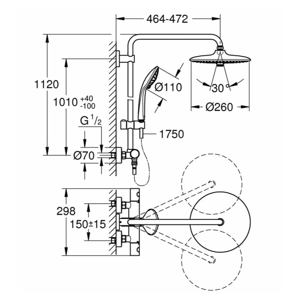 Grohe Vitalio Joy System 260, colonne de douche avec mitigeur thermostatique, douche de tête 3 jets (26539000)