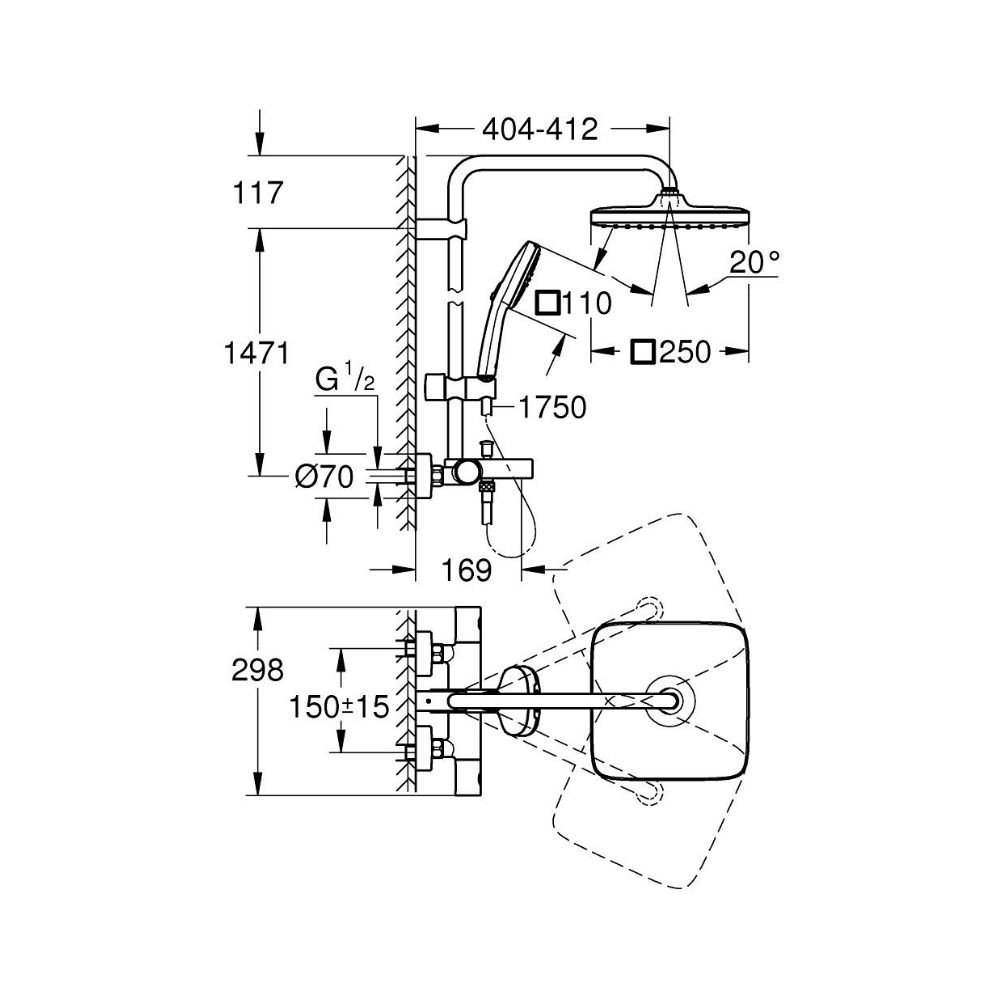 - Diamètre douche de tête (mm):250