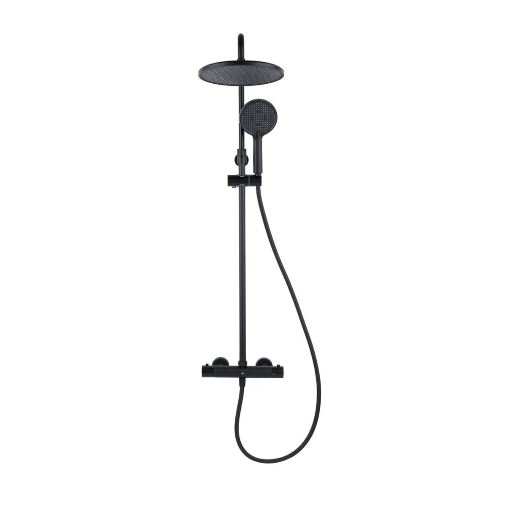 Swiss Aqua Technologies Aurum colonne de douche avec mitigeur thermostatique + douchette 3 jets + douche de tête, noir mat (SATSSTKEMC)