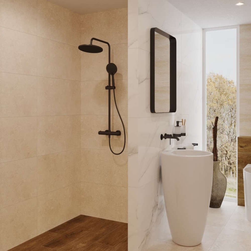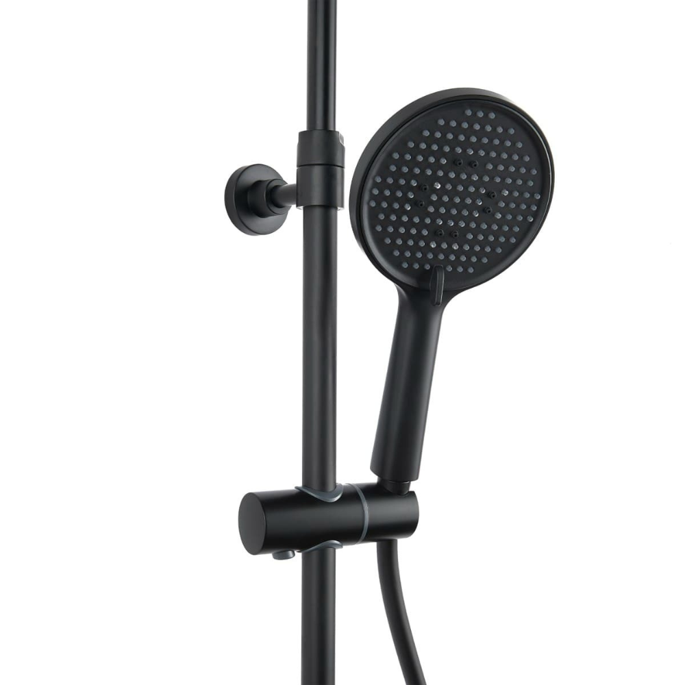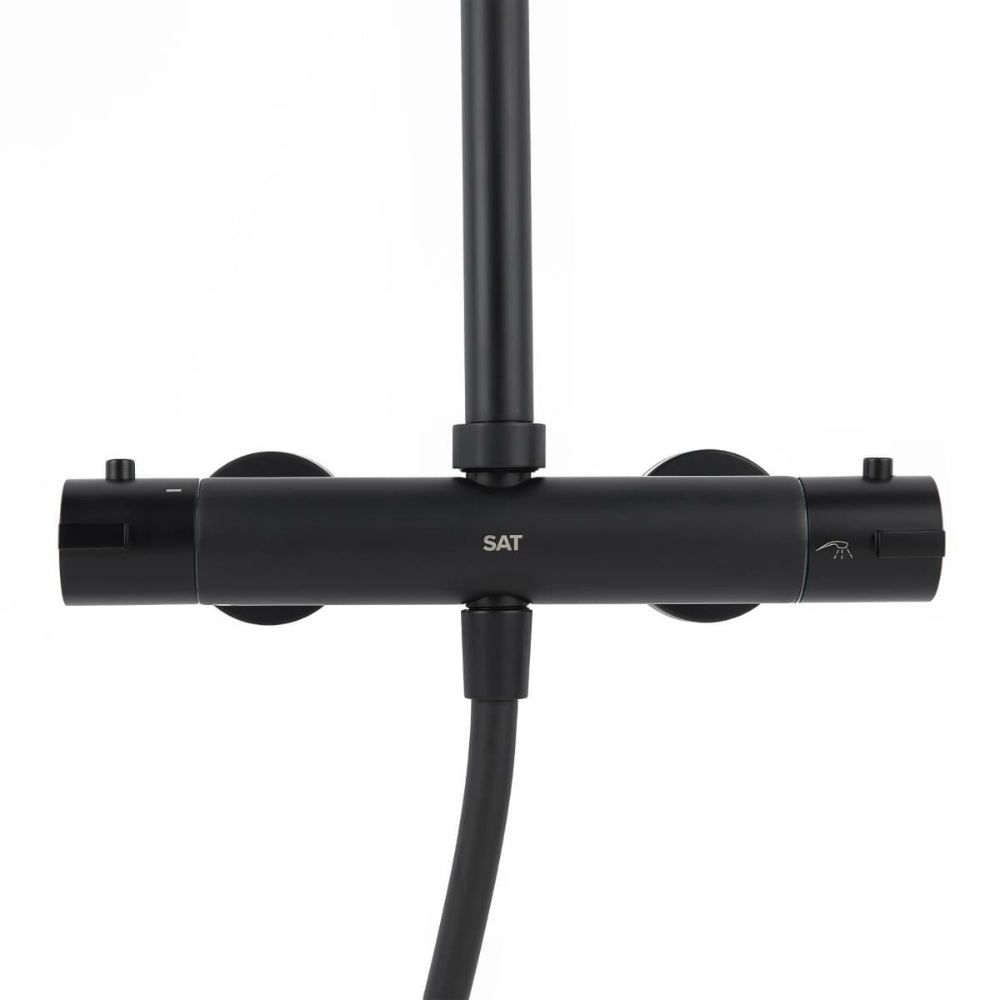 Caractéristiques de la colonne de douche avec mitigeur thermostatique + douchette 3 jets + douche de tête, Swiss Aqua Technologies (SAT) Aurum, noir mat (SATSSTKEMC) :