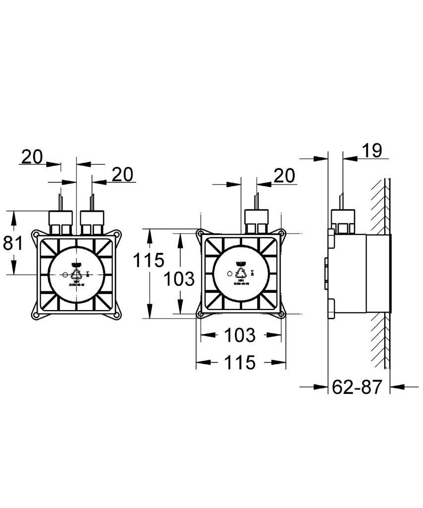 - 2 corps encastrés (115 x 115 x 62-87 mm)