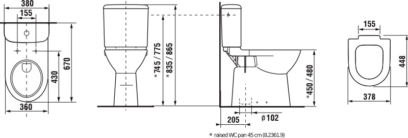 Jika (Groupe Roca) Cuvette à poser PMR 360mm x 480mm x 670mm avec évacuation verticale (H8236170000001)