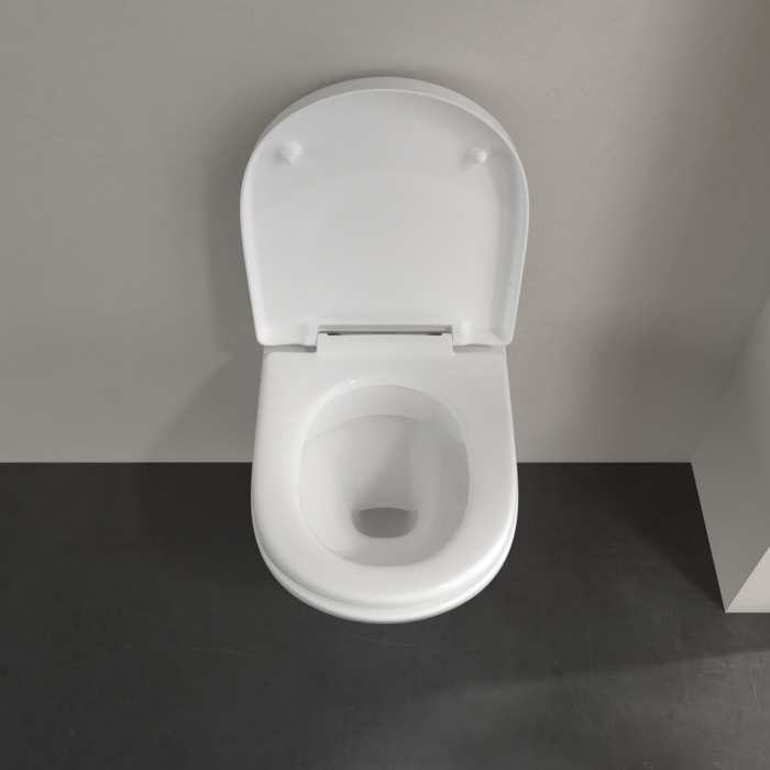 Villeroy & Boch O.novo Cuvette WC sans bride compact, modèle suspendu, avec DirectFlush, Blanc CeramicPlus (5688R0R1)