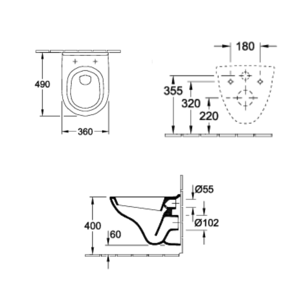 Caractéristiques de la Cuvette Suspendue à fond creux O.novo Villeroy & Boch, 360 mm x 490 x 330 mm, Blanc brillant (56881001) :