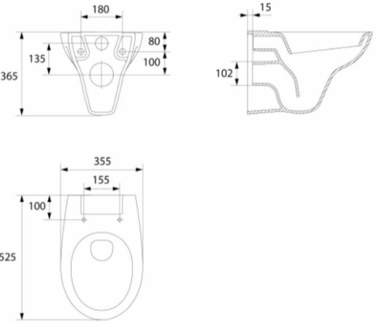 Caractéristiques du Cuvette suspendue seule avec vidange horizontal, Blanc, Cersanit S-line Pro (K588-003) :