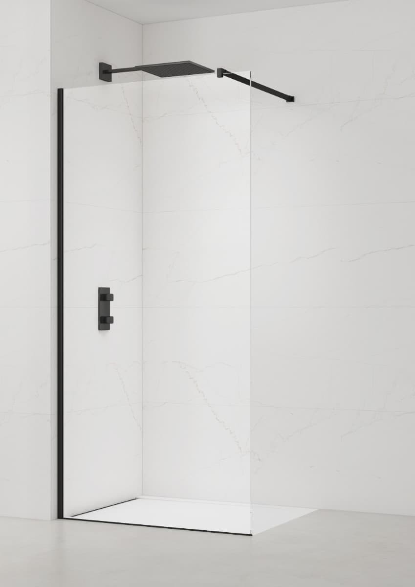 Caractéristiques de la paroi de douche Walk-In anticalcaire avec profilés et bras noir mat (SATBWI70PRC) :