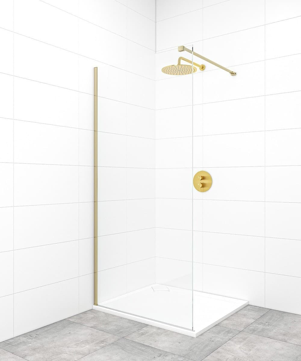Caractéristiques de la paroi de douche Walk-In anticalcaire avec profilés et bras couleur Laiton (SATBWI100PRMO) :