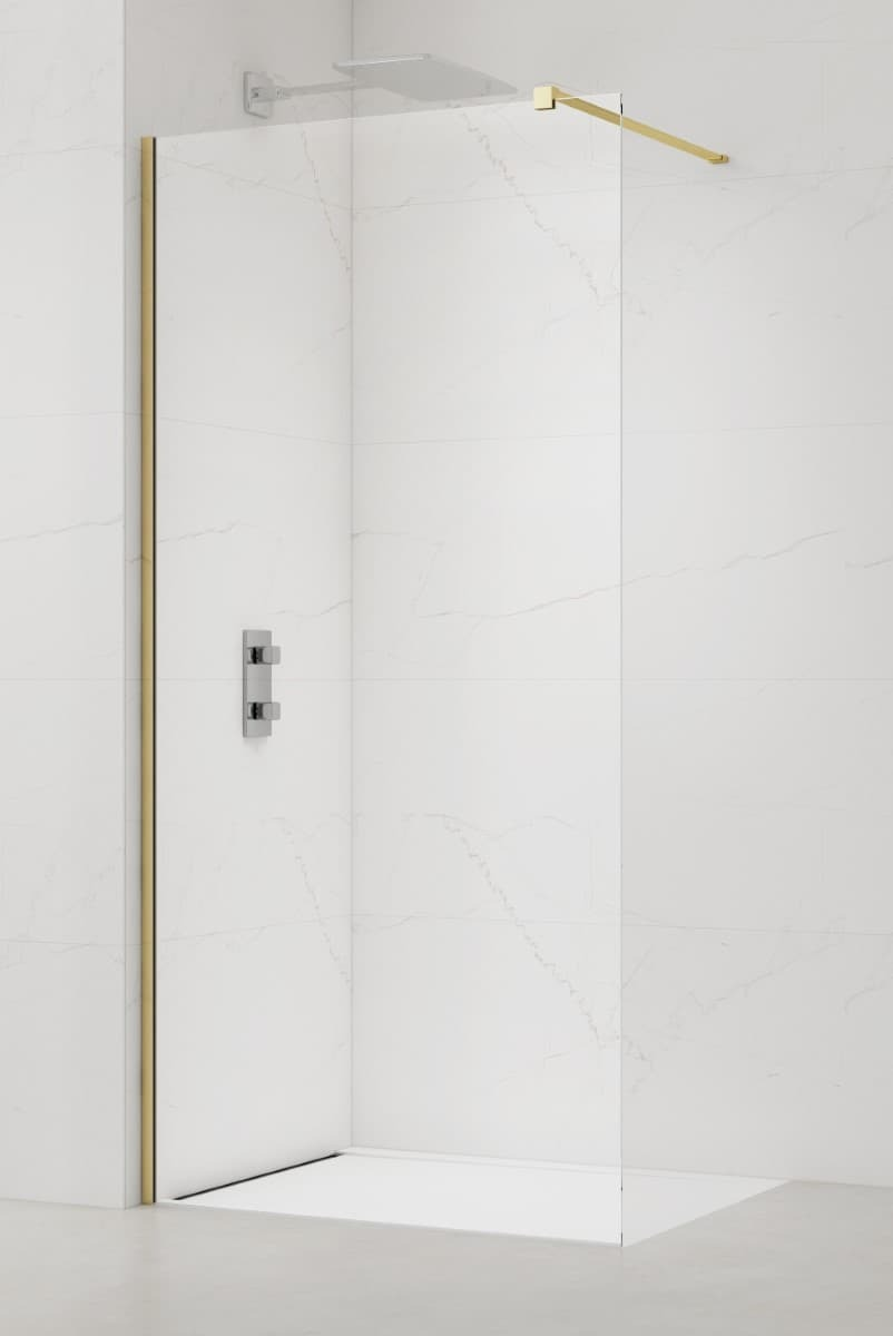Caractéristiques de la paroi de douche Walk-In anticalcaire avec profilés et bras couleur Laiton (SATBWI130PRMO) :