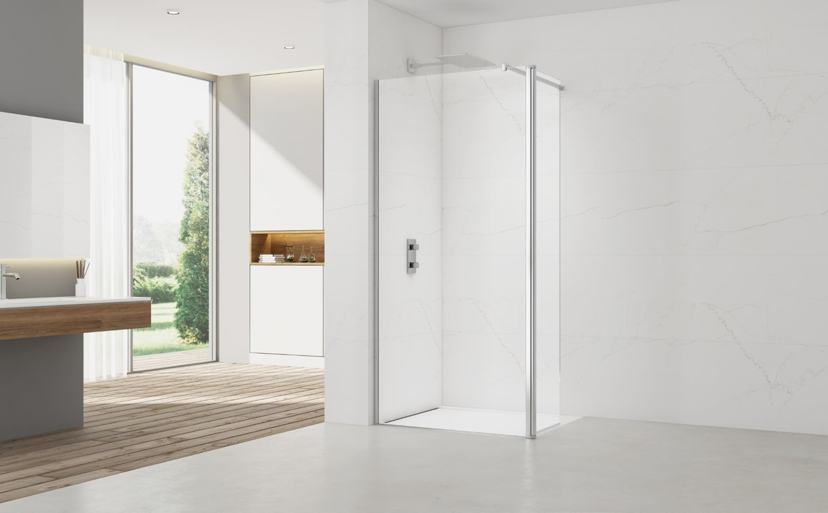 Découvrez nos sets parois avec retour pivotants disponibles en plusieurs dimensions (80, 90, 100, 110, 120 et 140 cm) et coloris : noir, chrome, pour s'adapter à toutes vos préférences de style !