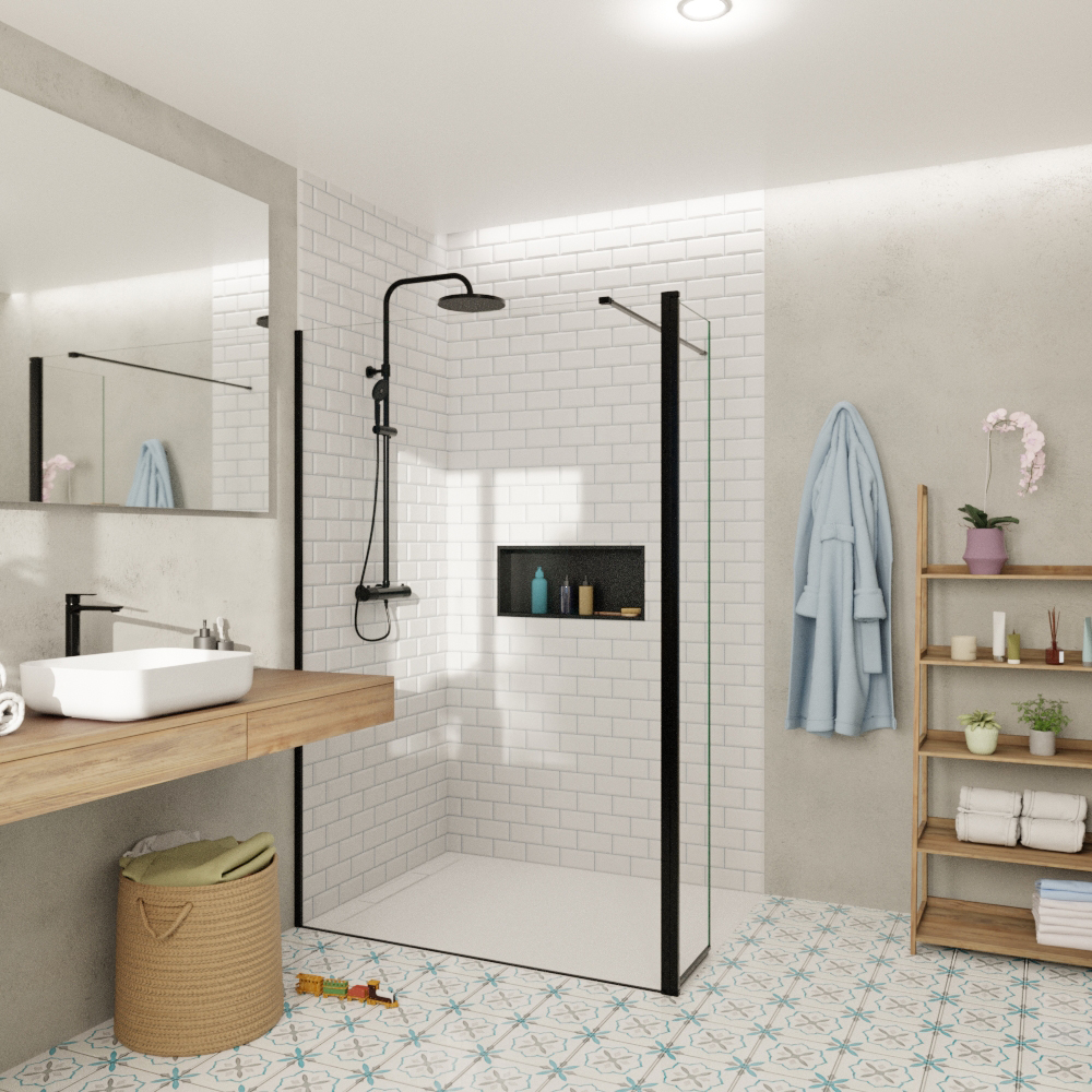 Découvrez nos sets parois avec retour pivotants disponibles en plusieurs dimensions (80, 90, 100, 110, 120 et 140 cm) et coloris : noir, chrome, pour s'adapter à toutes vos préférences de style !