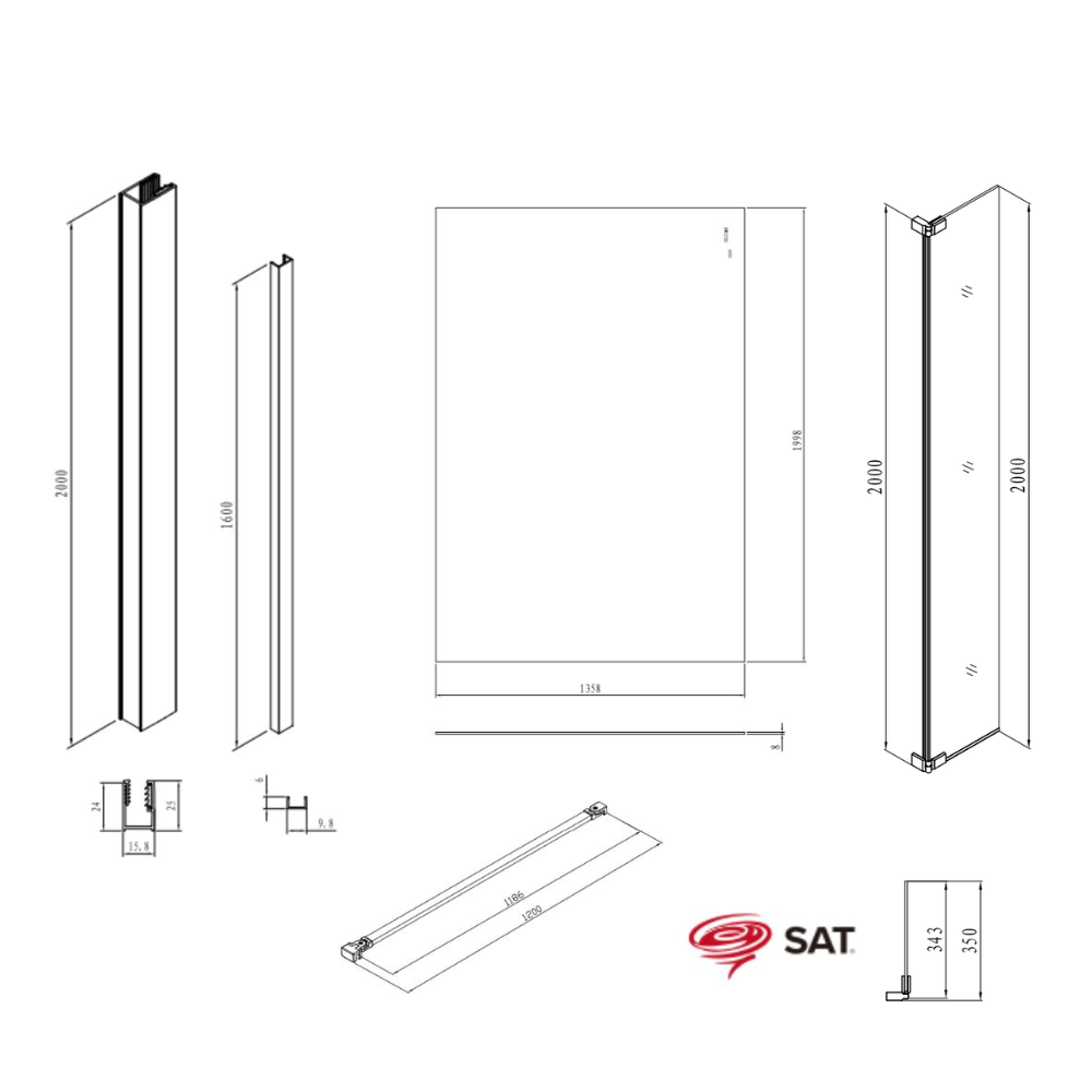 Caractéristiques de la paroi de douche et du retour pivotant Walk-In anticalcaire avec profilés et bras Noir mat (SATBWI140PRCROZC) :