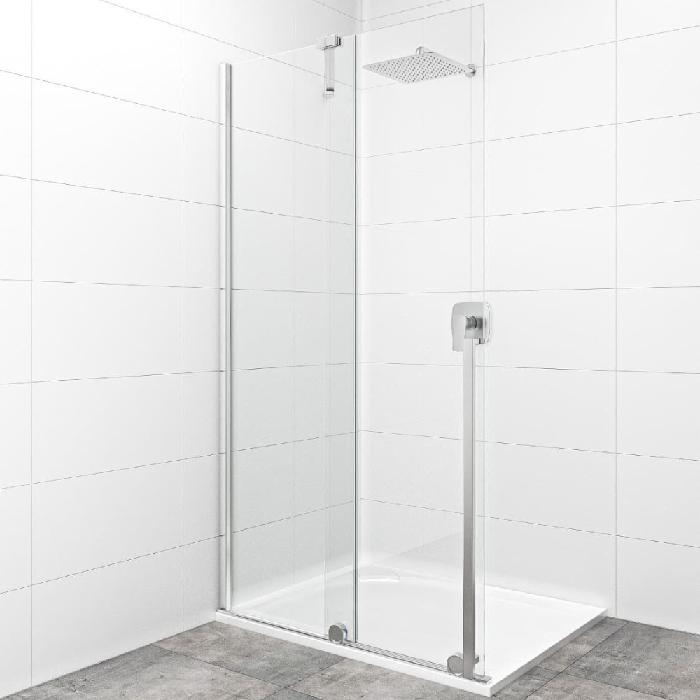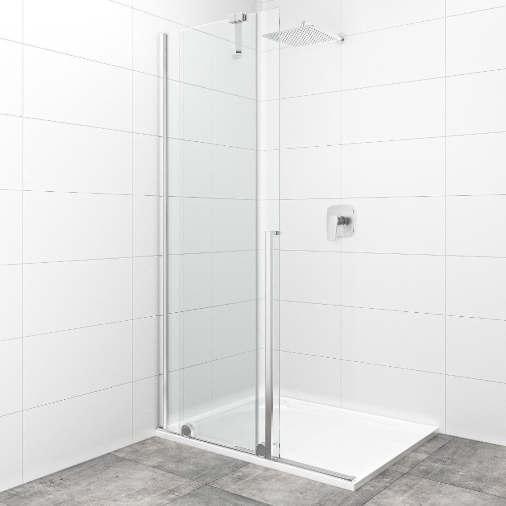 Swiss Aqua Technologies X-MOTION 110x200cm Paroi en verre coulissante Crystal Glass® 8 mm anticalcaire, avec bras et profilés chrome brillant (SATBWIXM1