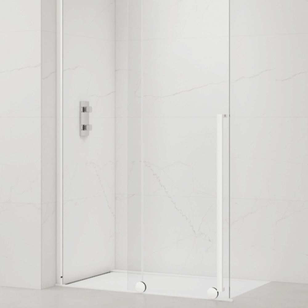 Swiss Aqua Technologies X-MOTION 110x200cm Paroi en verre coulissante Crystal Glass® 8 mm anticalcaire, avec bras et profilés Blanc (SATBWIXM110B)