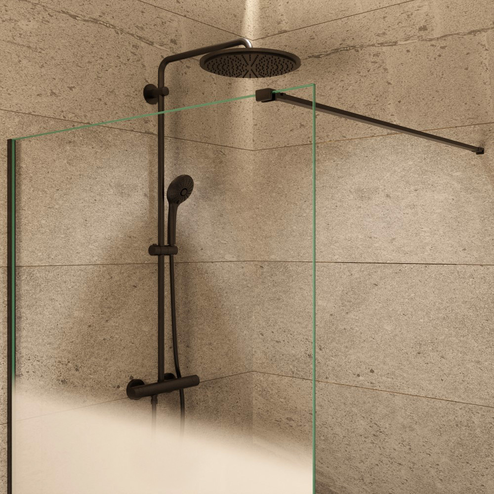 Caractéristiques de la paroi de douche Walk-In Semi-poli anticalcaire avec profilés et bras noir mat (SATBWI100MPPRC) :